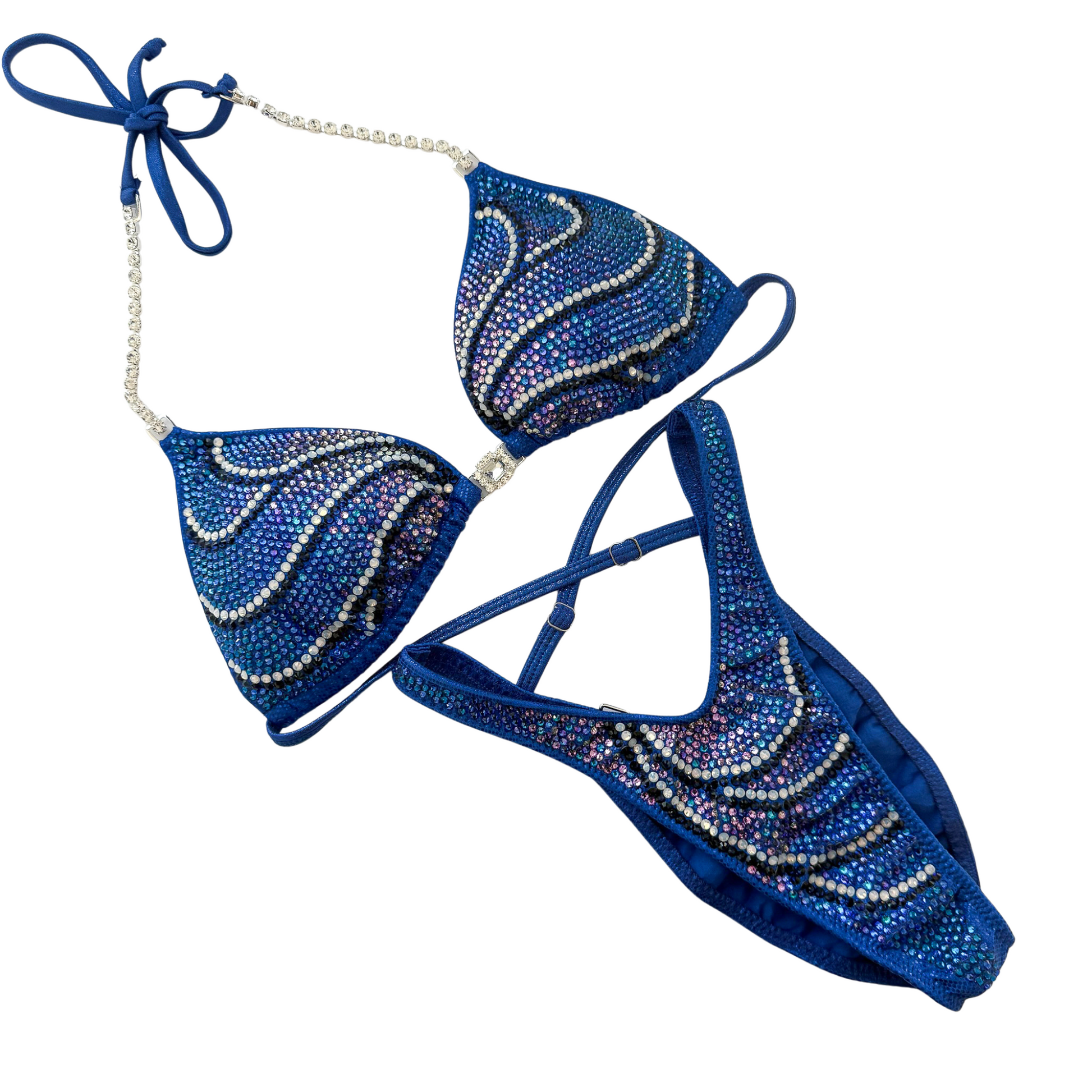 Our Commissioned Design is a fully stoned suit design with an ombre from the center of the suit. We recommend selecting a line crystal that will pop out against the rest of the suit for the best results.