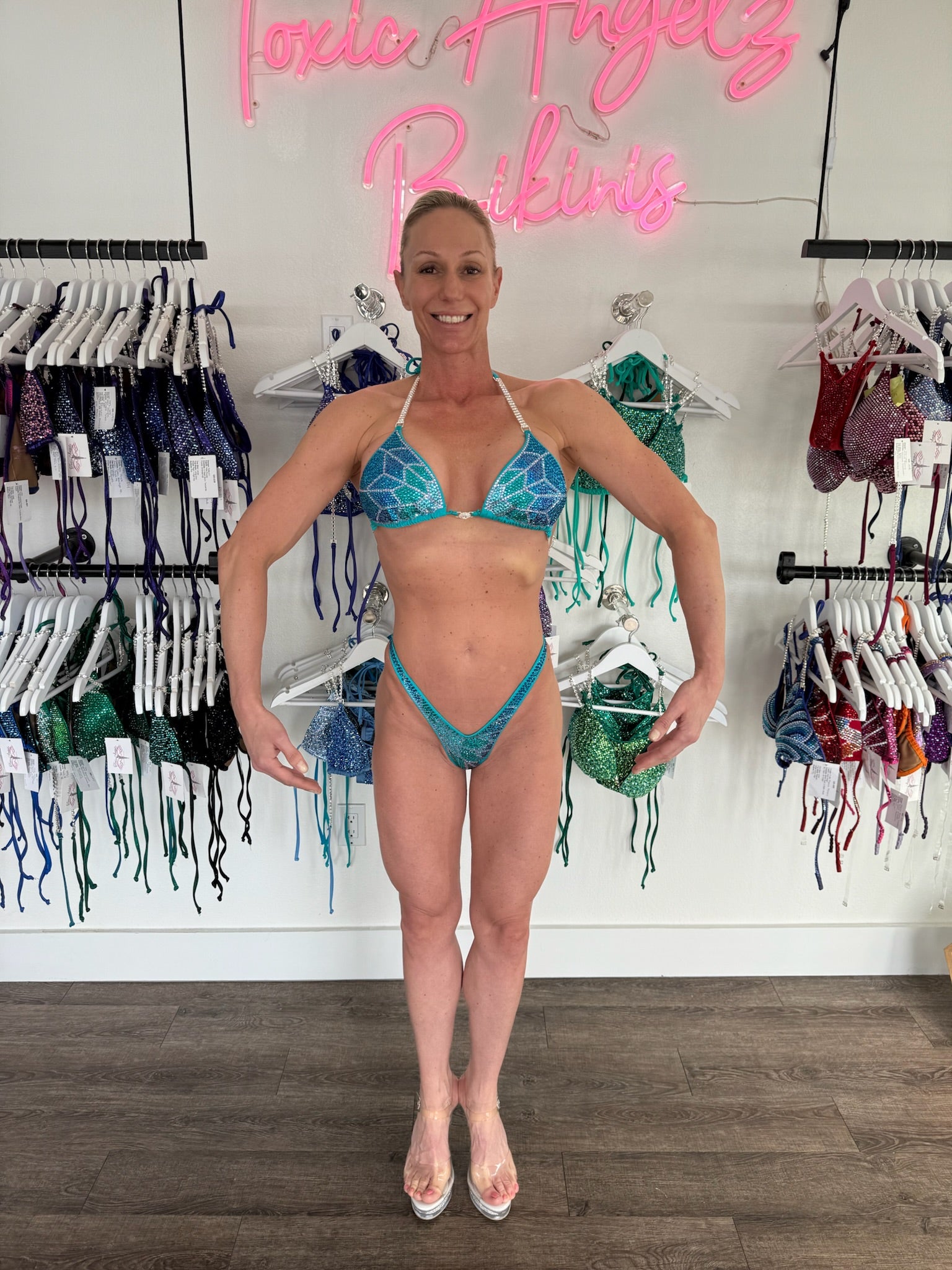 All team, wellness, and figure posing suits are custom-made to order. Please allow us approximately 2 business weeks to make your posing suit. You will receive an email with your tracking information once your posing suit is ready to ship.