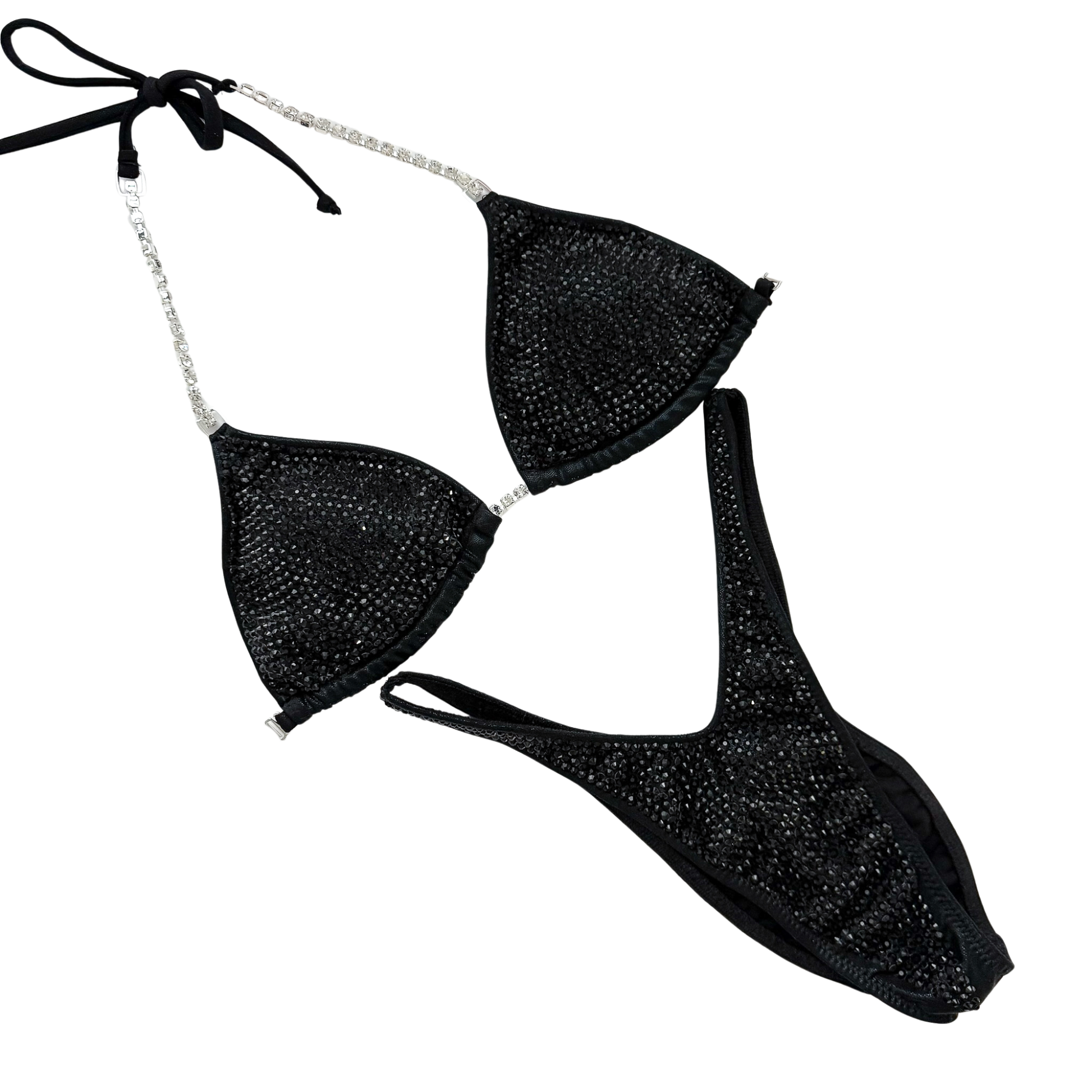 The Full Scatter design is a fully stoned design that has two different sized crystals (16ss and 20ss) randomly scattered on the suit for a dimensional effect. We recommend selecting 1-5 different crystal colors for the best result.
