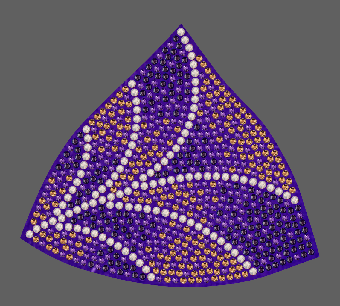 The Harlequin design is created with the 3 different colored crystals laid out to create a subtle ombre in different directions of the top. These ombre patches are divided by multiple lines to create a multi-ombre effect. This design is created with crystals of one size (16ss). We recommend selecting 3 different crystal colors and 1 line color for the best results. So 4 different colors total.