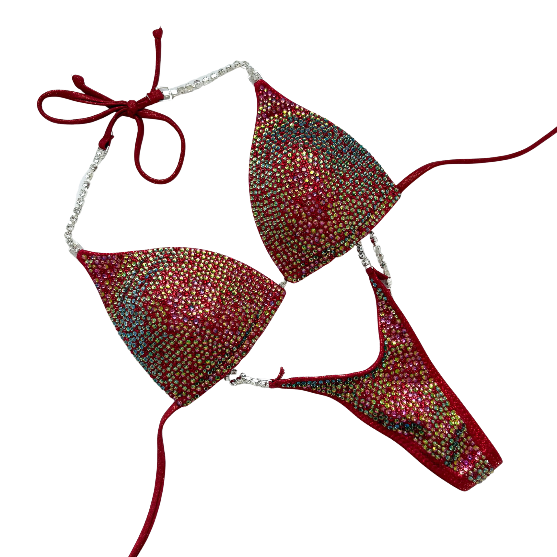 The Full Scatter design is a fully stoned design that has two different sized crystals (16ss and 20ss) randomly scattered on the suit for a dimensional effect. We recommend selecting between 1-5 different crystal colors for the best result.