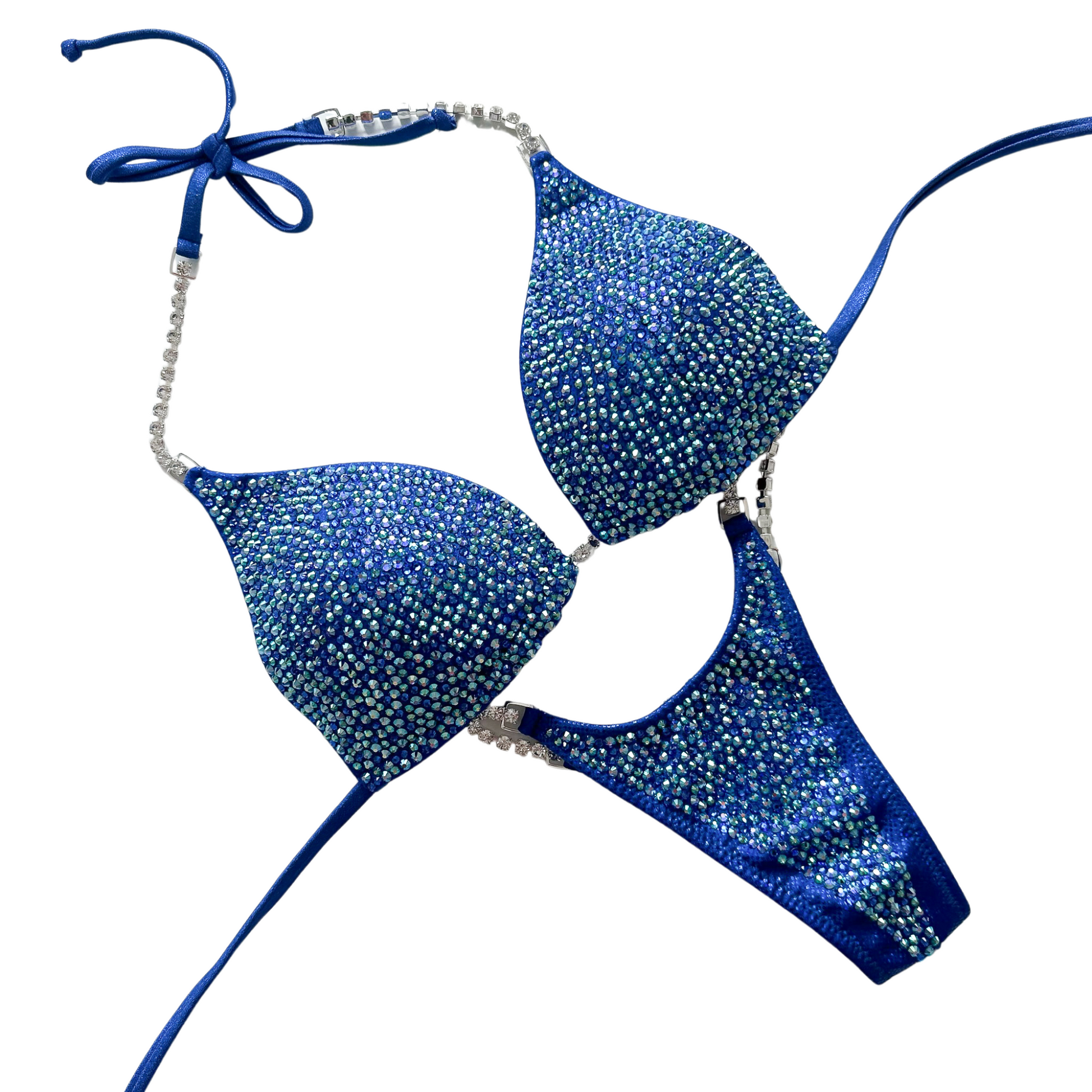 The Full Scatter design is a fully stoned design that has two different sized crystals (16ss and 20ss) randomly scattered on the suit for a dimensional effect. We recommend selecting between 1-5 different crystal colors for the best result.