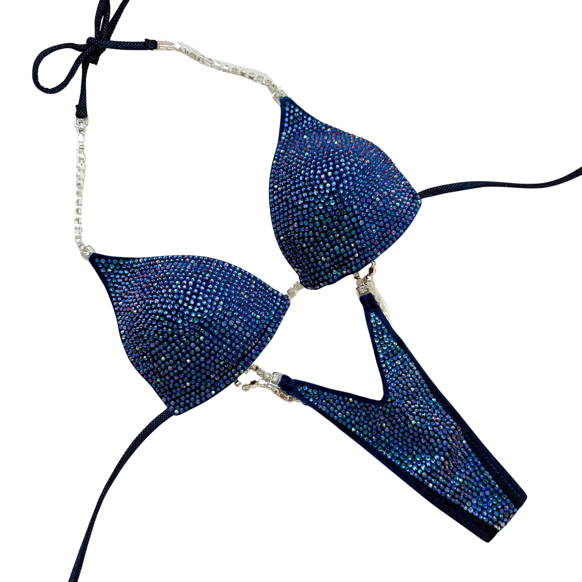 Our Full Scatter design is one of our fully stoned designs that have two different sizes of crystals scattered randomly on the suit.