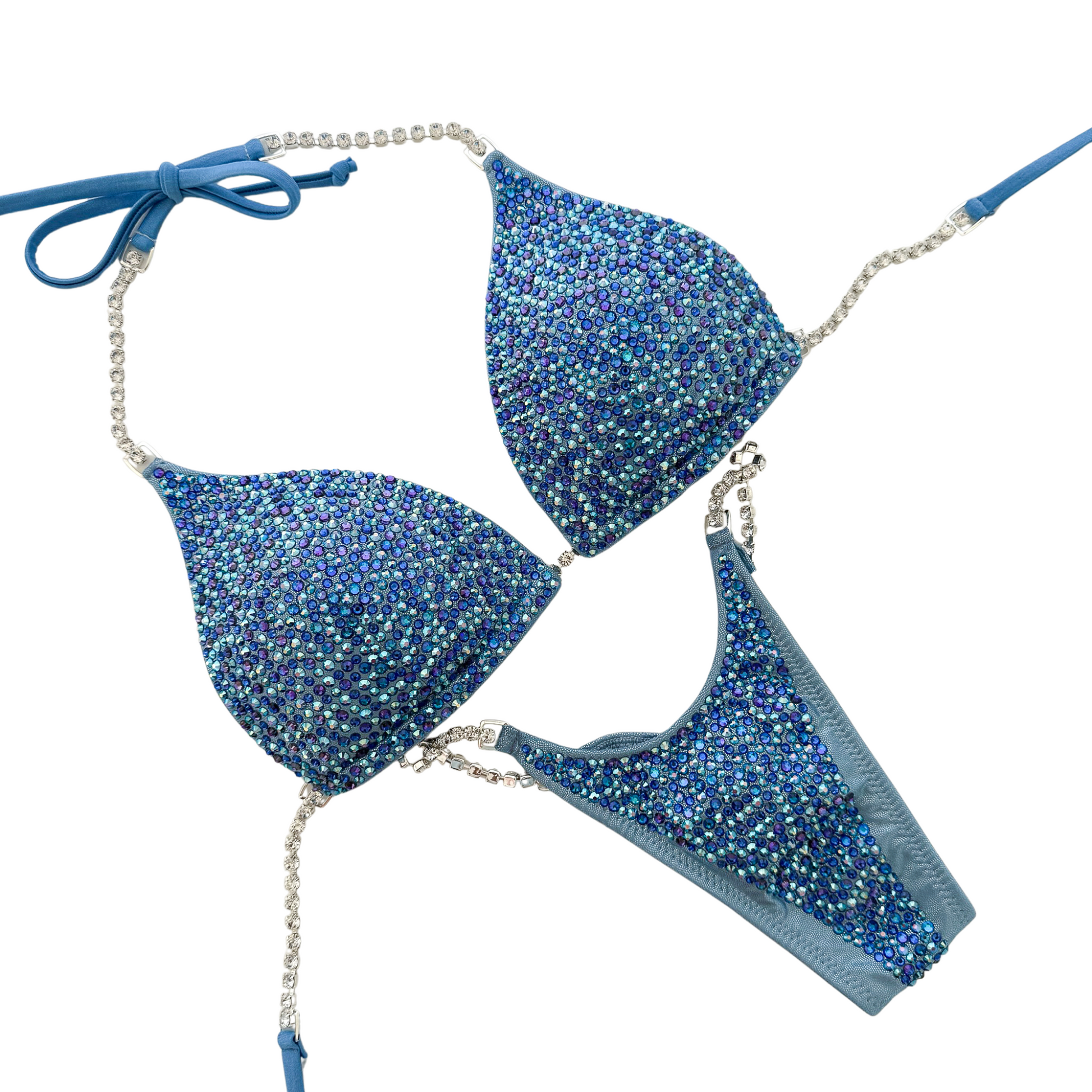 The Full Scatter design is a fully stoned design that has two different sized crystals (16ss and 20ss) randomly scattered on the suit for a dimensional effect. We recommend selecting between 1-5 different crystal colors for the best result.