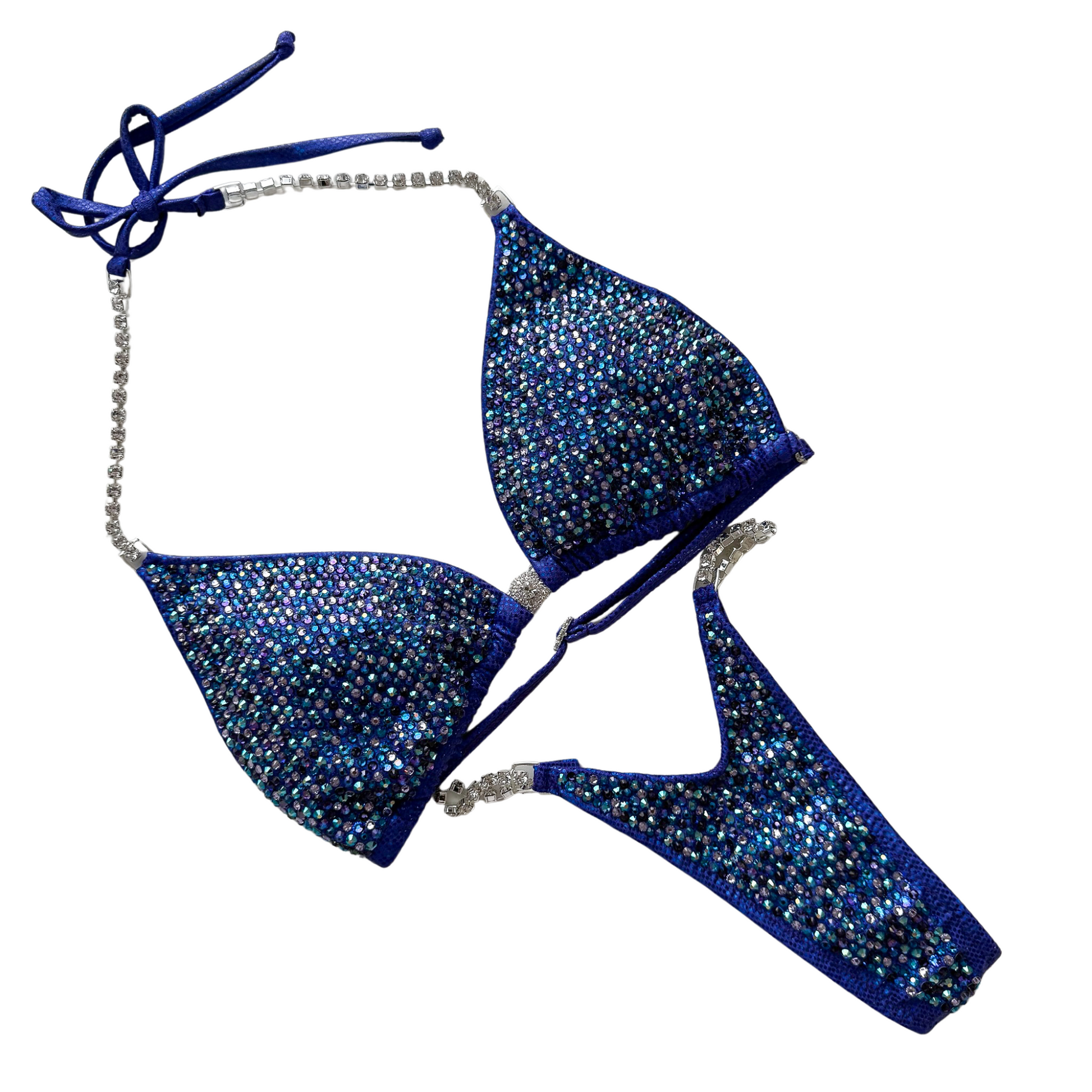 The Full Scatter design is a fully stoned design that has two different sized crystals (16ss and 20ss) randomly scattered on the suit for a dimensional effect. We recommend selecting between 1-5 different crystal colors for the best result.