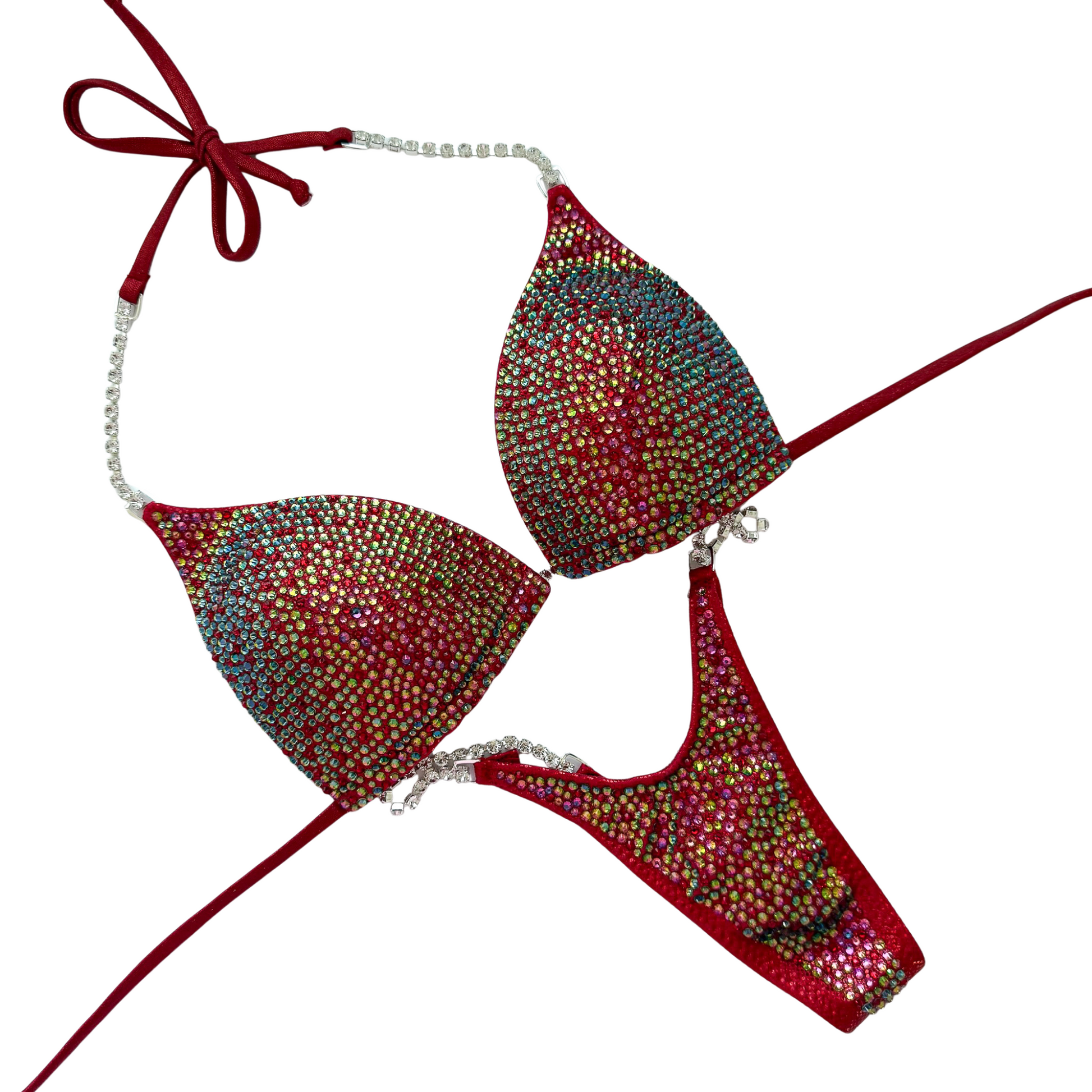 The Full Scatter design is a fully stoned design that has two different sized crystals (16ss and 20ss) randomly scattered on the suit for a dimensional effect. We recommend selecting between 1-5 different crystal colors for the best result.
