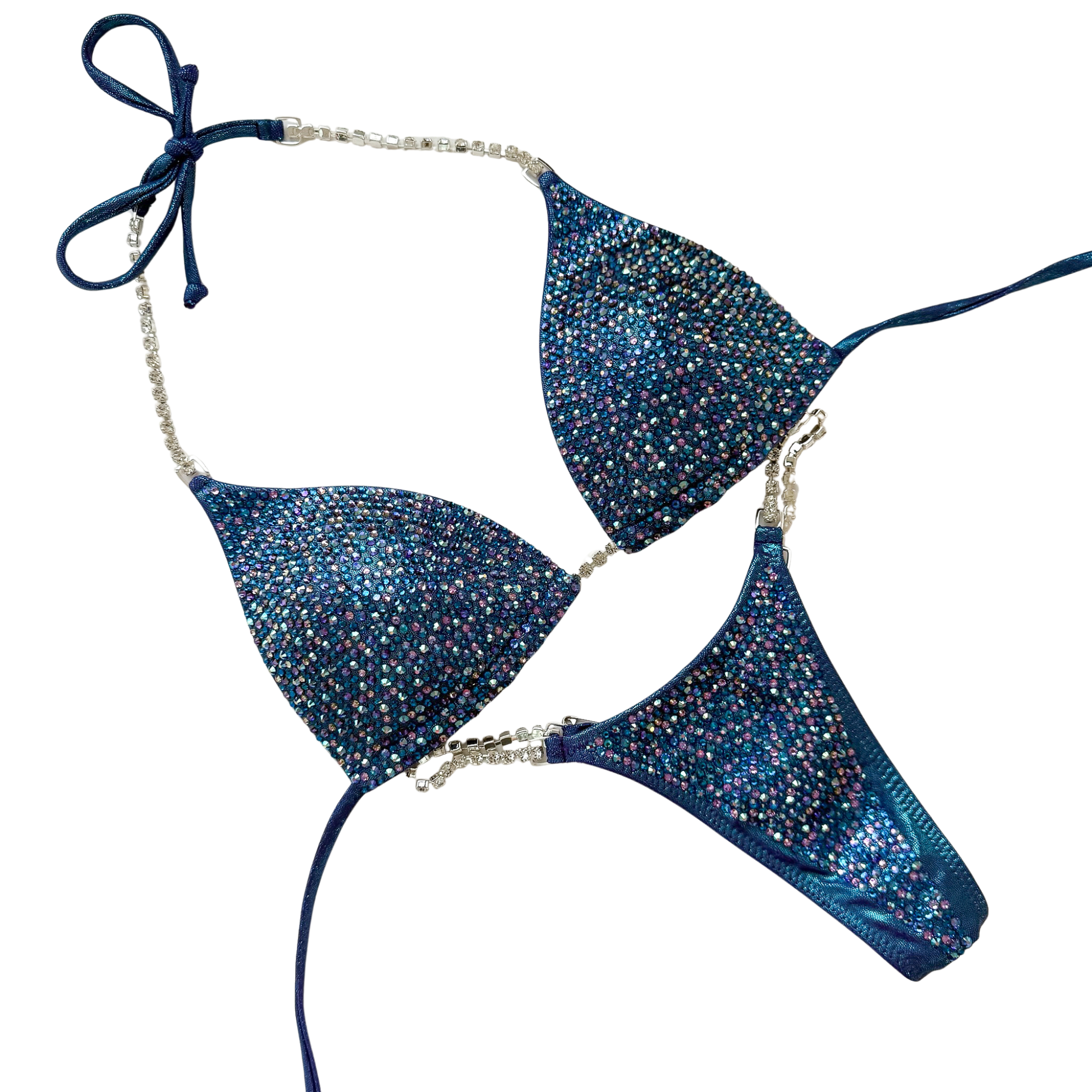 The Full Scatter design is a fully stoned design that has two different sized crystals (16ss and 20ss) randomly scattered on the suit for a dimensional effect. We recommend selecting between 1-5 different crystal colors for the best result.