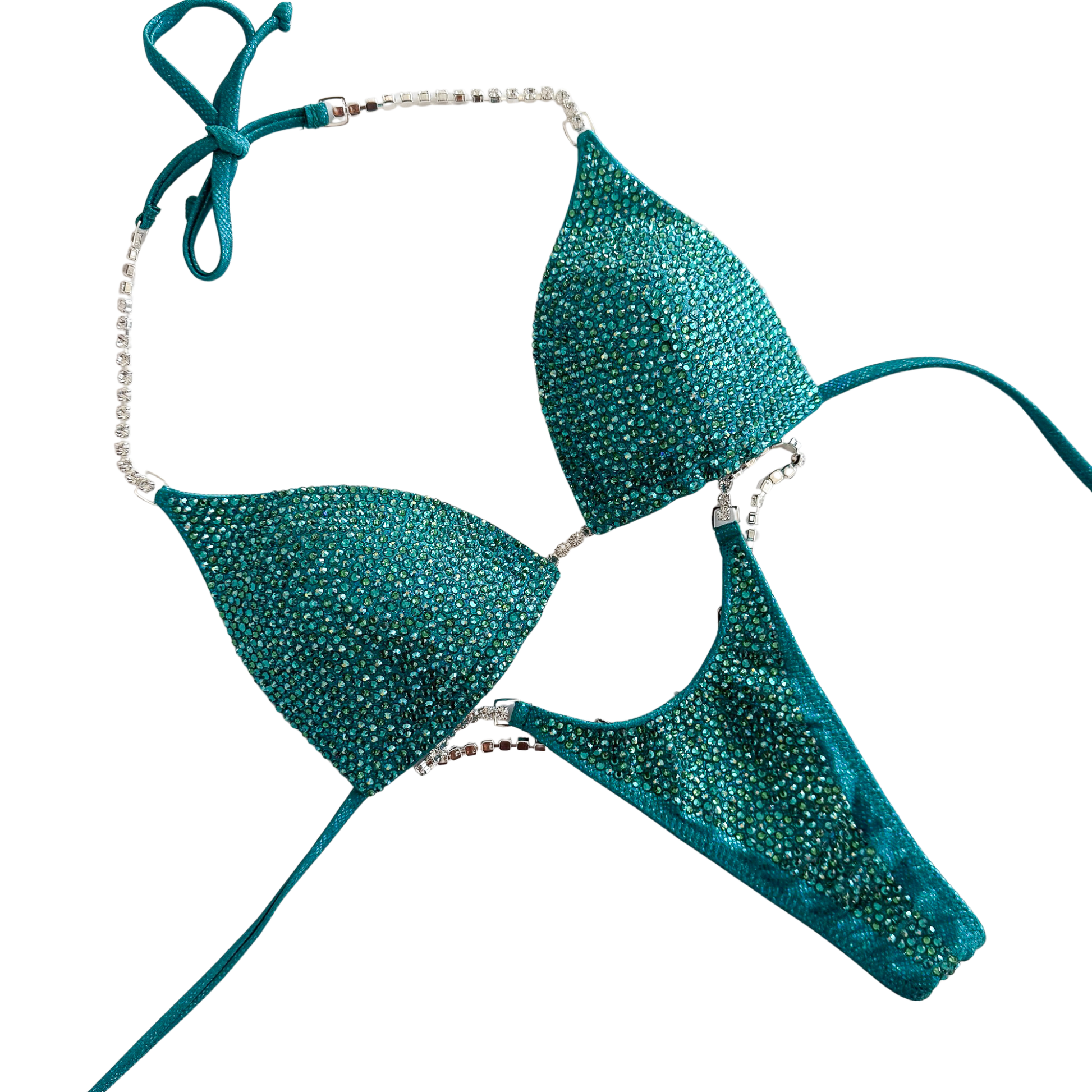 The Full Scatter design is a fully stoned design that has two different sized crystals (16ss and 20ss) randomly scattered on the suit for a dimensional effect. We recommend selecting between 1-5 different crystal colors for the best result.
